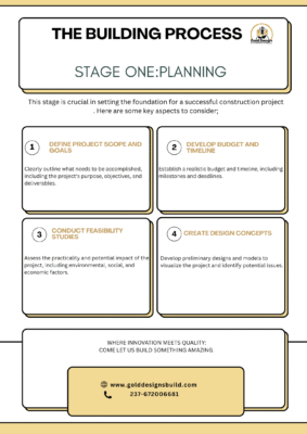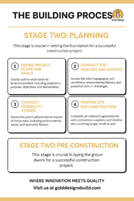 The journey from an initial idea to a finished building is one filled with creativity, strategy, and precision. At Gold Design, we believe that understanding this process helps clients feel confident, informed, and part of the transformation. Whether you’re planning your dream home or developing a commercial space, knowing how each stage unfolds ensures smooth progress and exceptional results.